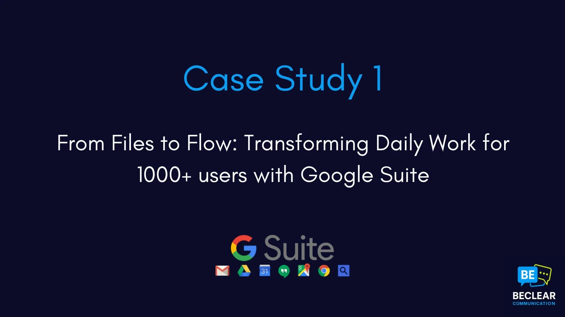 Through this transition project, over 1000+ users successfully transitioned from fragmented, personal workflows and communication system, to a structured, predictable and scalable Google ecosystem.